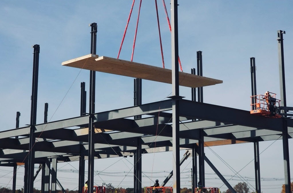 The tower combines a three-story concrete base with a glulam timber frame supported by dual rings of timber columns. Beech columns provide compressive strength for the inner structure, while Douglas fir columns on the outer ring stabilize the building. Floors incorporate a wood-concrete composite, and exposed timber beams and columns dominate the interiors, offering both structural integrity and sensory appeal.