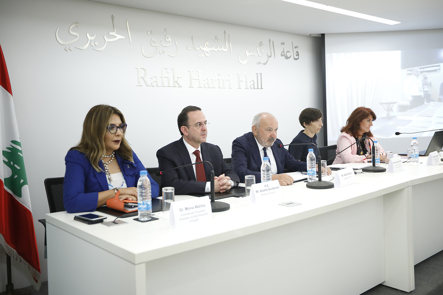 The speakers’ panel comprised H.E. Mr. Avedis Guidanian; Minister of Tourism, Mrs. Francesca Zadro; Trade Commissioner of the Italian Trade Agency, Mrs. Marie Maamari; Directrice Bureau Business France Liban, Dr. Mona Wahba; Commercial Counselor of the Embassy of the Arab Republic of Egypt, and Mr. Albert Aoun; Chairman of IFP Group.